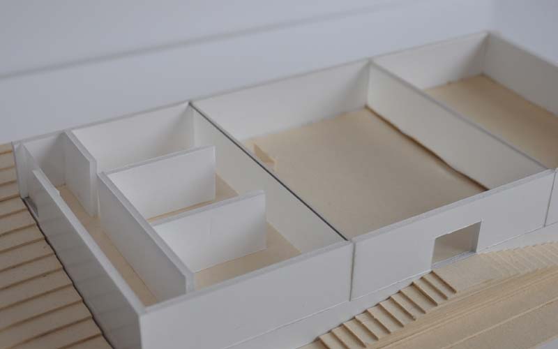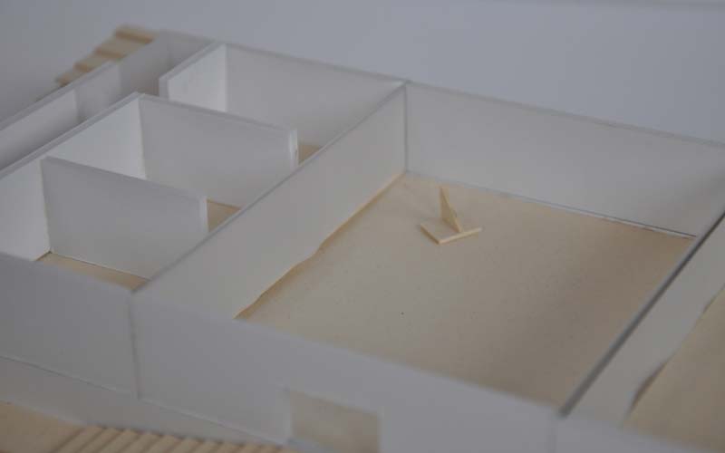 Auf insgesamt 800 m² Fläche begegnen sich das Atelier mit Wohnmöglichkeit und der öffentliche museale Showroom in einer Atriumsituation.